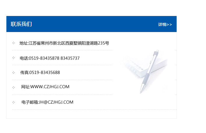 傳真:0519-83435688    郵編:213135    網址:WWW.czjhgj_com.2856897.com    電子郵箱:JH@czjhgj_com.2856897.com